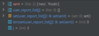2번 신고한 사람, 신고된 사람 분리하는 for문에서 함께 진행되는 코드이다.