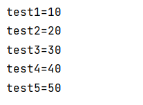 print('test'+ str(i) + '=' + str(globals()[f'test{i}']))